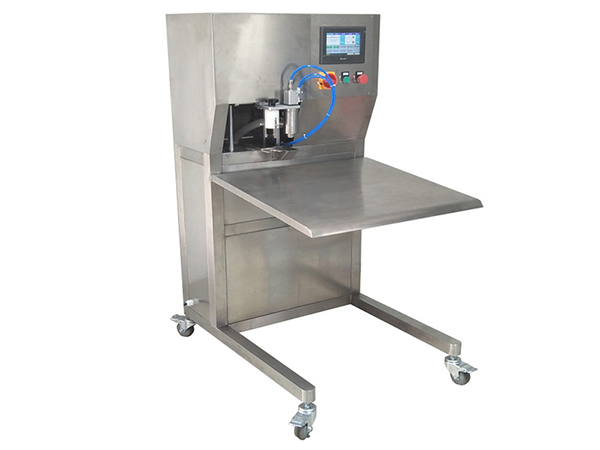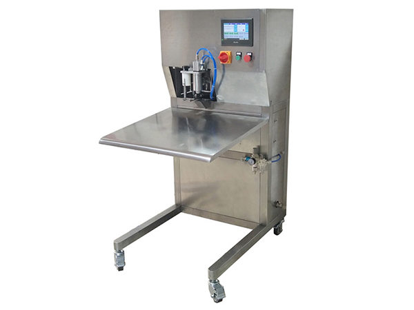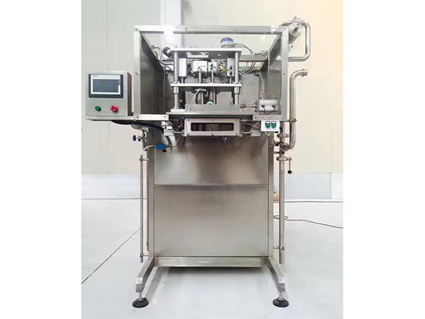 4. Après remplissage, le mécanisme monte et se déplace vers la droite, puis appuyez sur pour appuyer complètement le capuchon dans la bouche du sac.